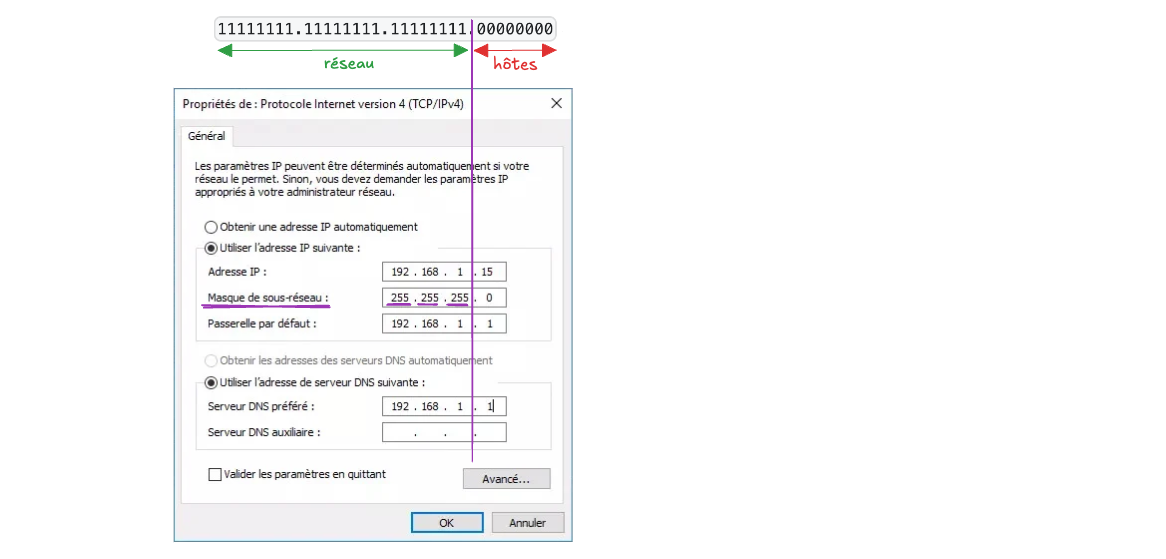 Le masque de sous-réseau est un nombre qui ressemble à une adresse IP (par exemple, 255.255.255.0).