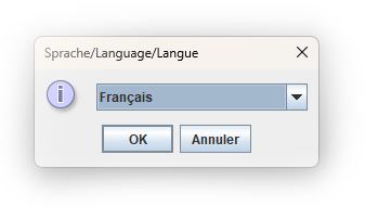 Lors du premier lancement, une fenêtre s'affiche pour permettre de choisir la langue.