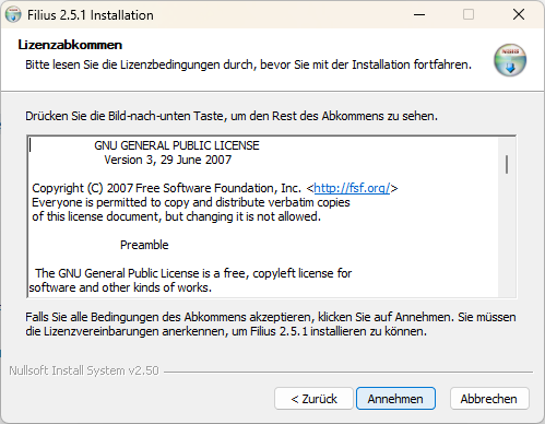 Cliquez sur le bouton Annhemen (qui signifie Accepter en allemand).