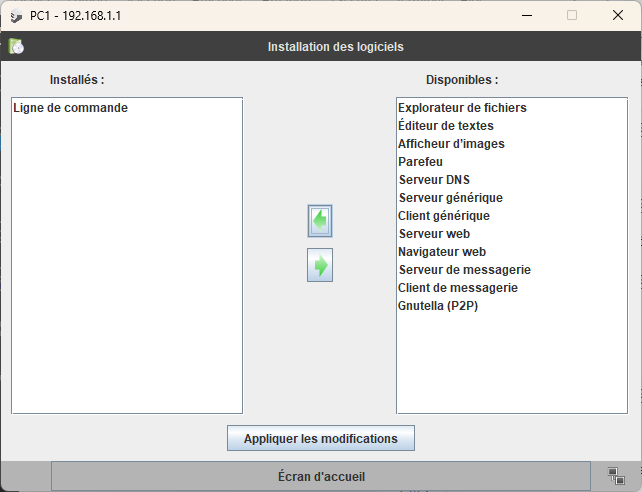 Installez un serveur Web sur PC1 et tentez d'y accéder depuis les autres machines, avec un navigateur Web sur PC2, PC3 et PC4.