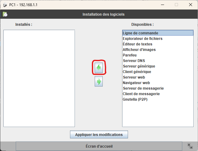 - Cliquez sur le bouton qui représente une flèche verte vers la gauche.