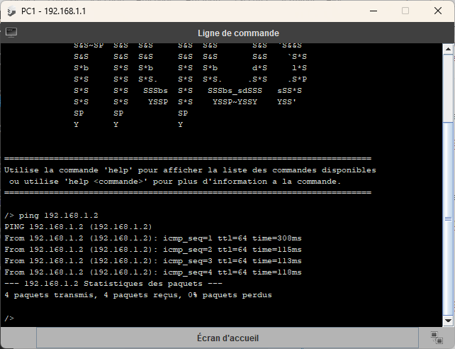 - Observez les résultats du ping qui confirment la connexion entre les 2 machines.