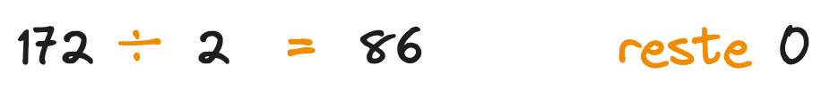 - Répéter ce processus avec le quotient obtenu jusqu'à ce que le quotient soit 0.