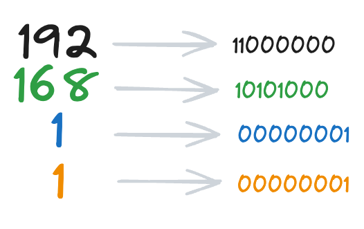 - 192.168.1.1 en binaire est : 11000000.10101000.00000001.00000001