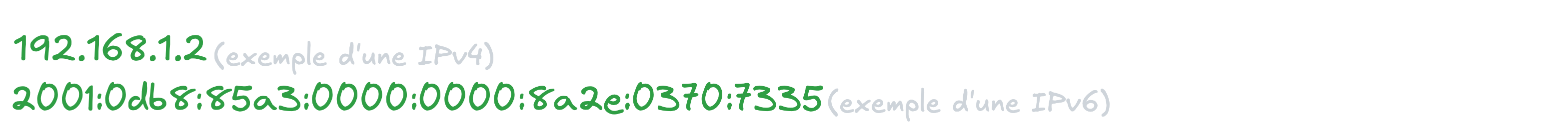 192.168.1.1). - IPv6 : Une adresse IPv6 est composée de 128 bits,