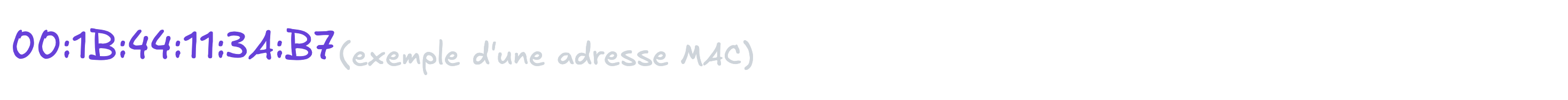 Structure : Une adresse MAC est composée de 48 bits, généralement représentée sous forme de 6 groupes de deux hexadécimaux séparés par des deux-points (par exemple,