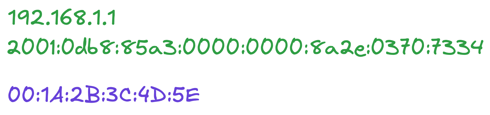Adresse MAC : Identifie physiquement une carte réseau spécifique sur un segment de réseau local (LAN).