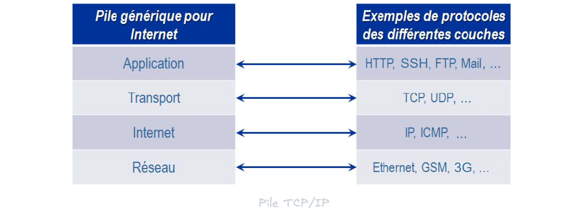 - Couche Internet : équivalente à la couche réseau du modèle OSI.