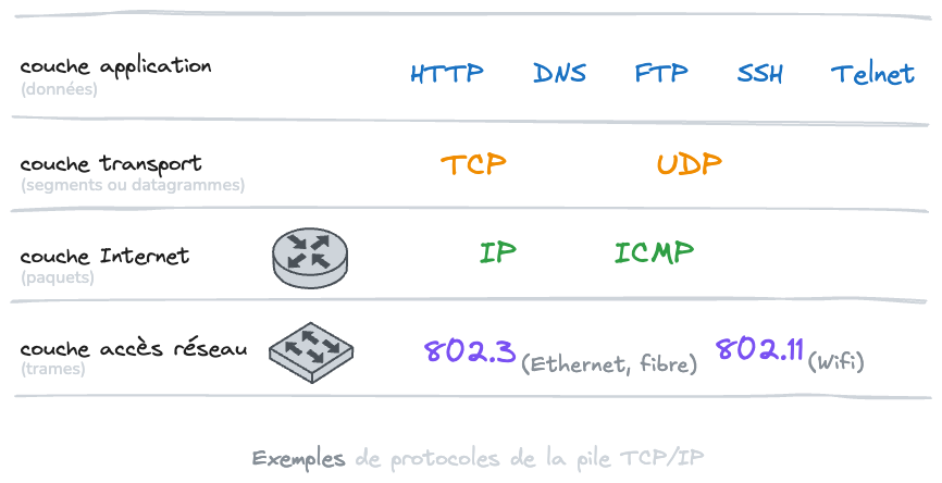 | Couche transport | Segments (TCP) / Datagrammes (UDP) |