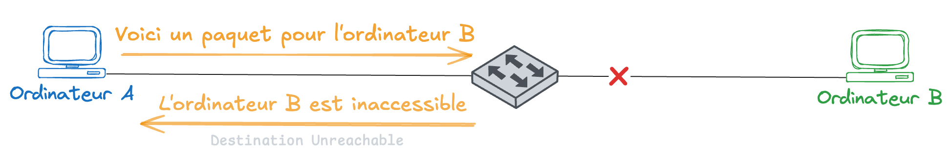 - Destination Unreachable : Indique qu'une destination n'est pas atteignable.