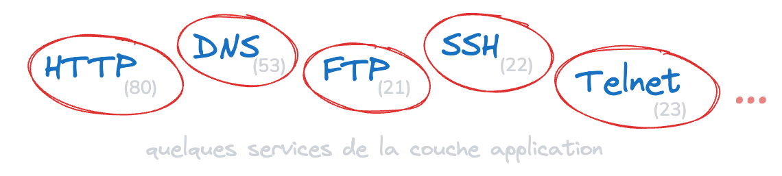 Par exemple, le service HTTP utilise généralement le port 80 (l'HTTPS le port 443) et le service DNS le port 53, etc.