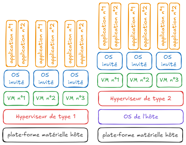 Exemples : ESXi, Hyper-V, Proxmox VE.