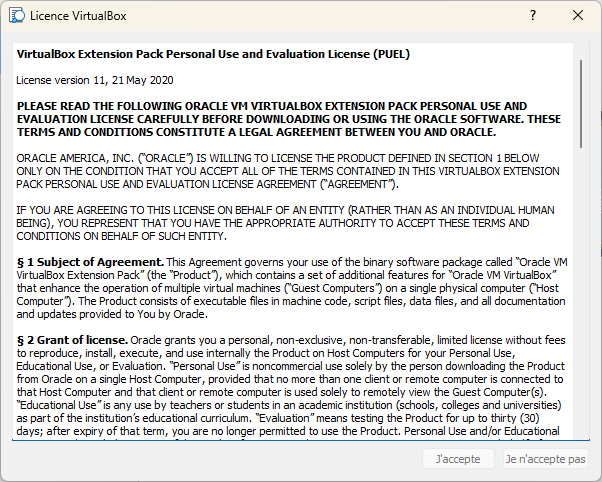 - Descendez l'ascenseur, pour lire l'intégralité de la licence, puis cliquez sur le bouton J'accepte