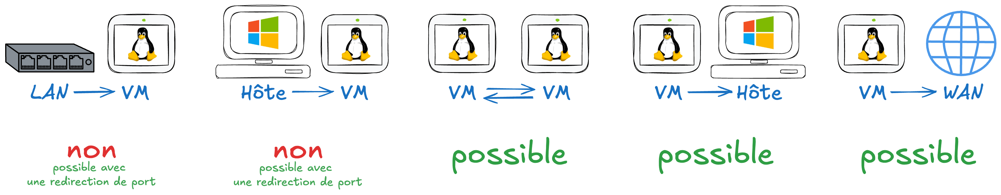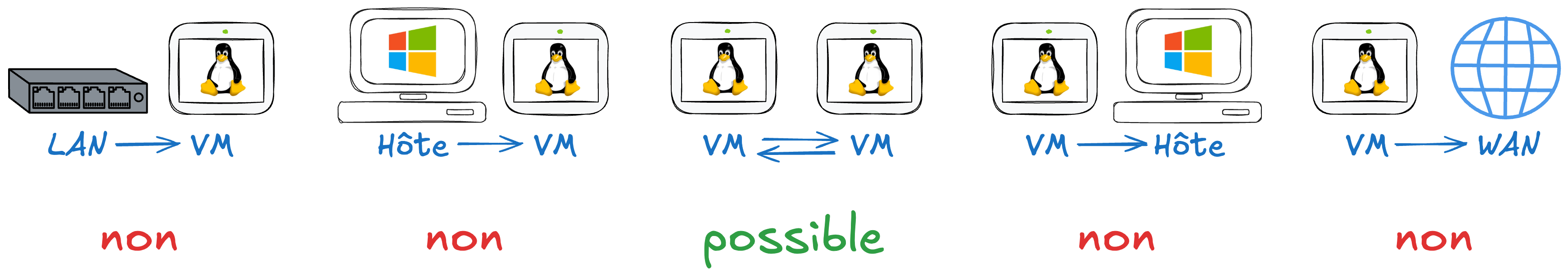 Cela permet d’isoler ces VMs du réseau physique tout en permettant à l’hôte d’y accéder.
