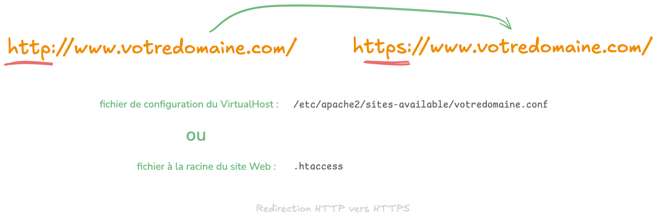 VirtualHostpour le port80, saisissez la ligne suivante :Redirect permanent / https://www.votredomaine.com/
